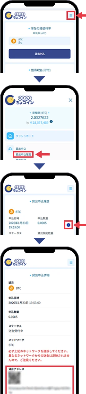 - 「らくらくちょコイン」では、貸出す際の送金手数料はいただいておりませんが、送金元ウォレットの手数料やネットワーク送金手数料が別途掛かることがありますのでご確認ください。